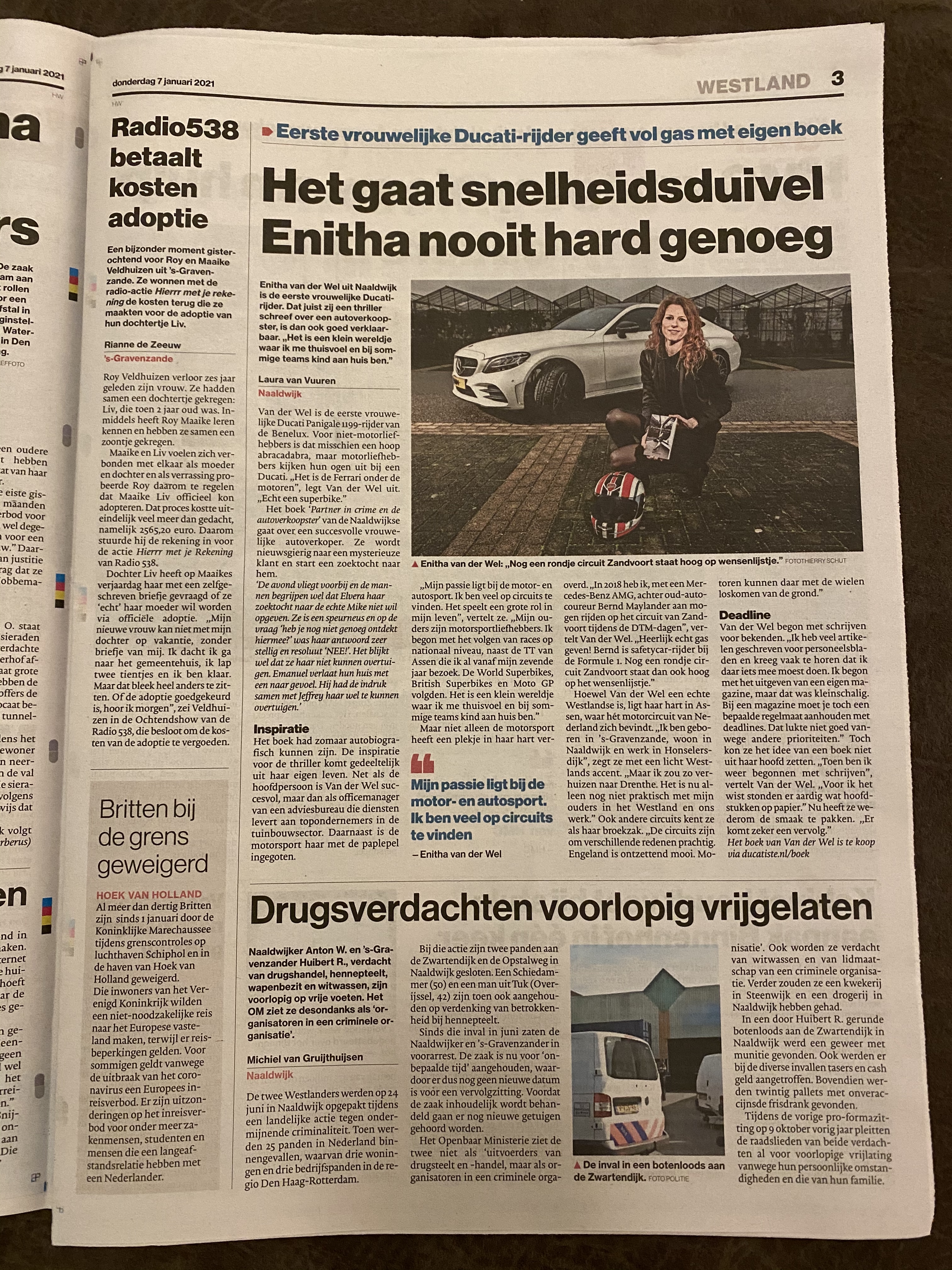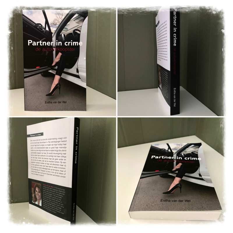 Uiteindelijk ging ik zomaar een stukje schrijven maar al snel werd het verhaal in mijn hoofd groter en groter. De tekst meer en meer. Vervolgens lag het, door allerlei omstandigheden, een tijdje stil en toen in 2020 de Corona crisis daar was, er geen motorrace of triatlon wedstrijd te bezoeken was, geen andere uitjes en evenementen, besloot ik het spreekwoordelijk stof van de tekst af te schudden en verder te schrijven. En zo was daar mijn officieel eerste boek: Partner in crime, de autoverkoopster. De mensen die me kennen zullen in de lach schieten bij het horen van deze subtitel. Het is overigens een beroep dat me vele malen werd toegejuicht “dat jij geen autoverkoopster bent geworden” . Ik lach het weg “nee joh, ik hou van regelmaat en wil graag een gewoon vrij weekend” . En bovendien, als je dan meemaakt wat zich in het boek afspeelt…. ?!
