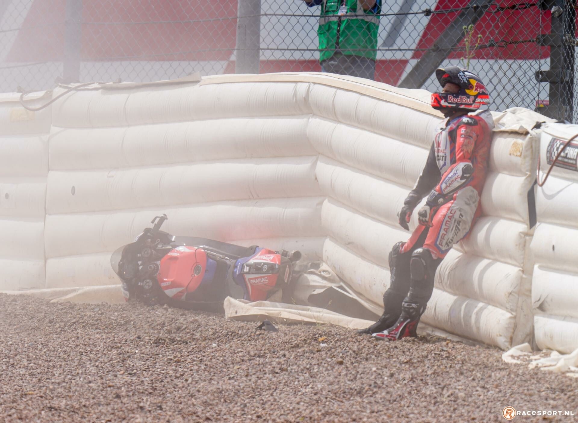 Op enig moment moest Alex Marquez ontwijken en die maakte zich zo druk dat hij zelf andere rijders in de weg reed maar nog het meest zijn eigen broer Marc die hem tenauwernood kon ontwijken. Hij maakte zich niet (zichtbaar!) druk om de actie van zijn broer; de anderen dan weer wel en zo was er oververhitting van het asfalt alsook de koppies op de machines.